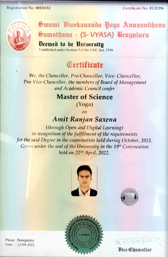 Amit R. Saxena holds an M. Sc. in Yoga Science and is a dedicated yoga practitioner. An educator with extensive experience. He is committed to sharing the profound benefits of yoga for holistic well-being.